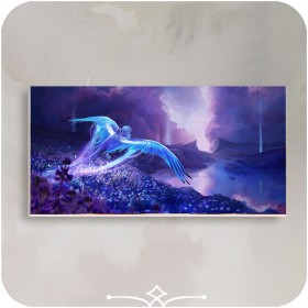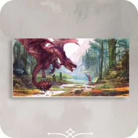 •Matériau : Forex©Tableau représentant la rencontre d'un dragon avec un voyageur, dessin réalisé par mes soins, à la tablette graphique, puis imprimé sur un matériau à la fois rigide et souple, léger et imperméable : le Forex©.